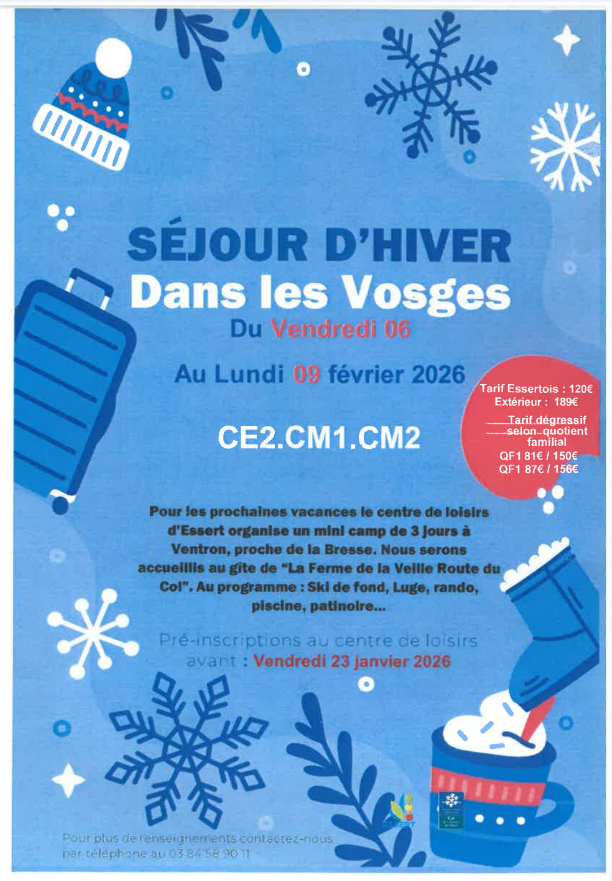 Les horaires de retour : Il nous est toujours difficile de fixer précisément une heure de retour. Les retours au centre se font généralement entre 17h30 et 18h00. Les informations spécifiques de chaque sortie seront affichées à l’entrée du centre de loisirs.